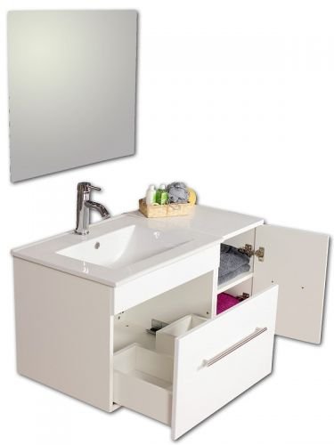 Fortuna [inkl. Waschbeckenunterschrank und Waschbecken] Mit ihrem schlichten und zugleich edlen Design ist die Serie Fortuna die richtige Wahl für alle Freunde hochwertiger Designer Badmöbel. Im Farbton weiss hochglanz passt die Serie optimal in nahezu jedes Badezimmer und sorgt für lange Freude an jedem hochwertigen und glänzenden Badmöbel. Die Schublade mit Soft-Close Schiene der Marke DTC verfügt über einen butterweichen Vollauszug, mit dem Sie dauerhaft die volle Übersicht behalten. Hinter der Tür verstecken sich 2 große Komfort-Fächer, die viel Platz für Ihre Badutensilien bieten. Waschtisch lässt sich sowohl links als auch rechts montieren.Bitte beachten Sie, dass nur die Fronten beschichtet sind, der Korpus Ihres Badmöb...