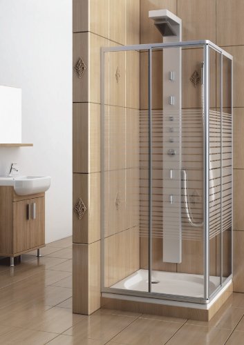 0 Respones to "Eckeinstieg Duschkabine Echtglas Sicherheitsglas mit Streifen Silberne Profile 80x80 90x90 80x90 90x80"